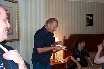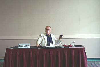 The Convention was a success from the standpoint of us. We all had a chance to spend some time together at the pool - at the bar - at the booksigning - we all had a good time. I'm sure that Brian and Silky, Robb and Peter will all have something to say about the trip in the next issue of the newsletter, so I'll try not to spoil any of their news with details of my own. I'll just let it be known that it was great to meet up with my fellow columnists, finally meeting Peter and hooking up with Robb again. Brian and Silky were both wonderful to spend time with and we hated to see the trip end...but as always - all good things must come to an end. Thanks to all for tuning in. Brian after his reading....