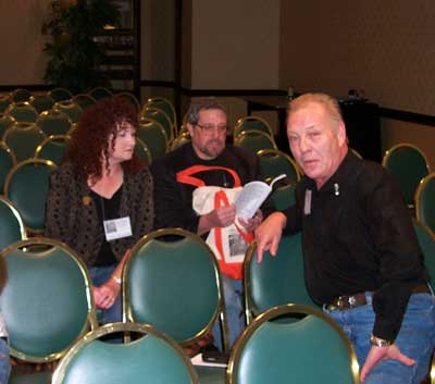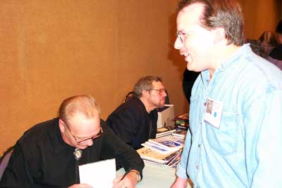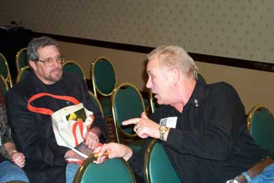 Mike Chick talking with Silky as Brian signs the huge collection he brought with him.