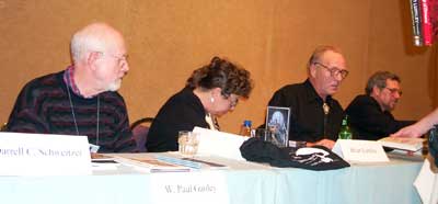 Darrell Schweitzer, D.H. Olsen, Brian Lumley, and Stuart David Schiff on the Paul Ganley appreciation panel.