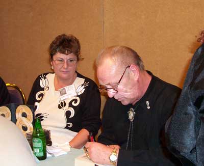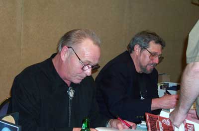 The author and artist guests of honor, Brian and Allen Friday night signing away...