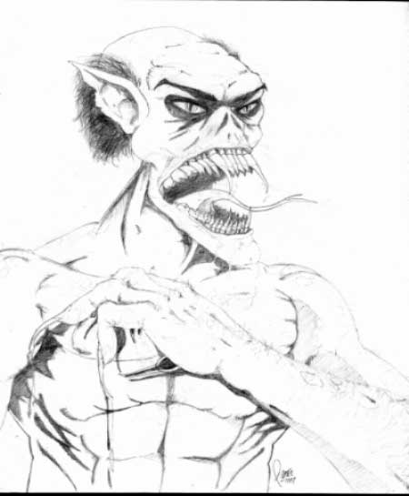 of the sinister Wamphyri as he schemes about his next venture. Fangs elongated